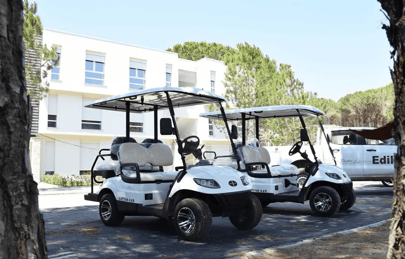 Veicolo elettrico 4 posti a ingombro ridotto. Particolarmente adatto per il trasporto di persone all’interno di strutture turistiche, industriali o sportive (es: visita stabilimenti, trasporto clienti).