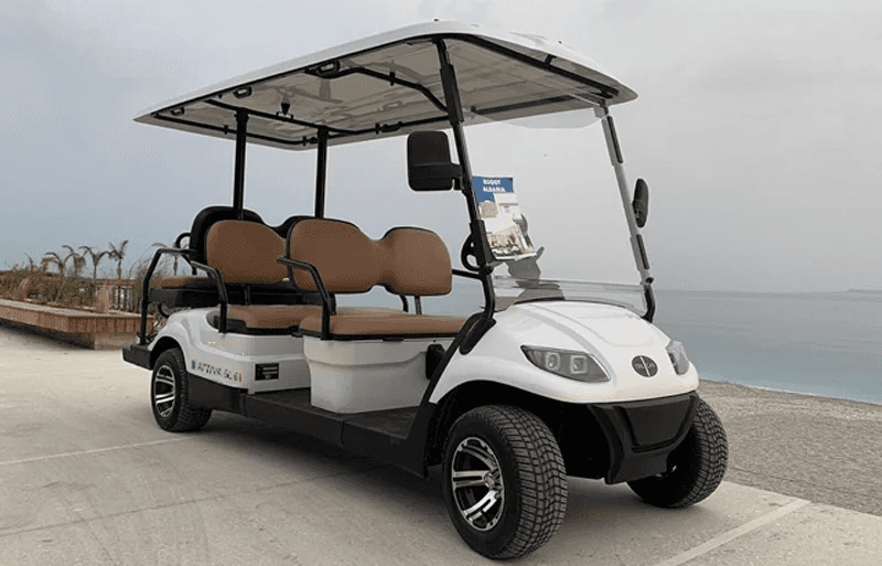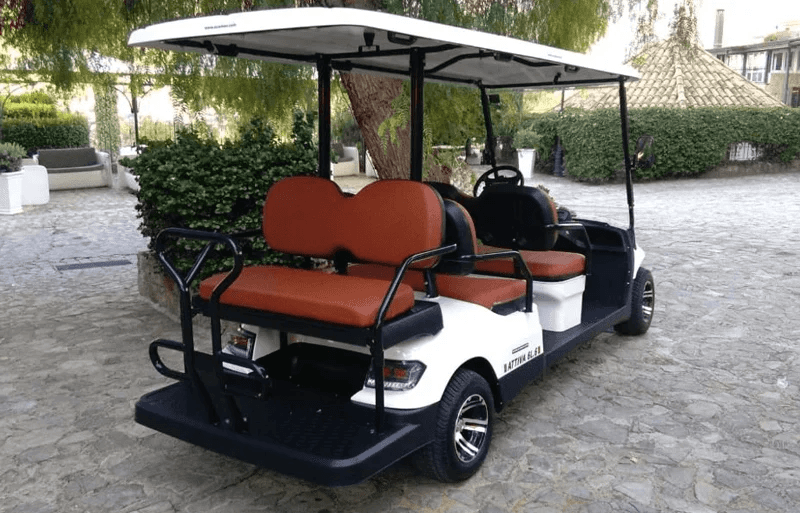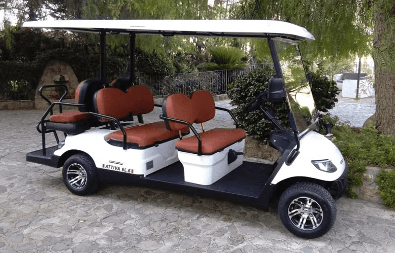 Veicolo elettrico 6 posti. Particolarmente adatto per il trasporto di persone all’interno di strutture turistiche, industriali o sportive (es: visita stabilimenti, trasporto clienti).