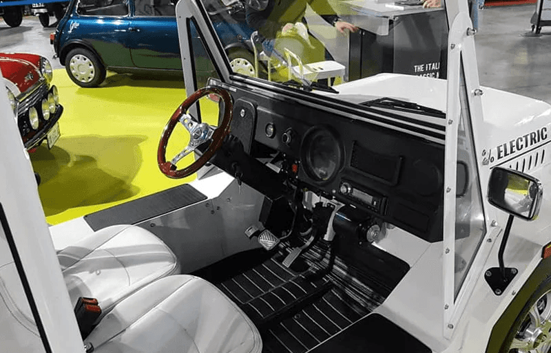 Capottina parasole, paraurti anteriore e posteriore cromati, copertura telonata, cruscotto dipinto con effetto venature in legno, retrocamera CCD.